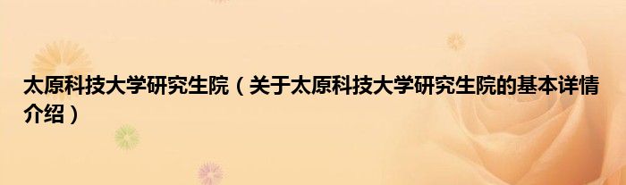 本文关于太原科技大学研究生院的基本详情介绍就讲解完毕,希望对大家有所帮助。
