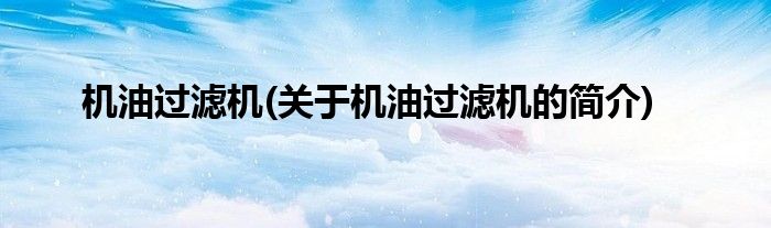 大家好,机油过滤机,关于机油过滤机的简介很多人还不知道,现在让我们一起来看看吧!