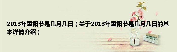 本文关于2013年重阳节是几月几日的基本详情介绍就讲解完毕,希望对大家有所帮助。