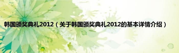 本文关于韩国颁奖典礼2012的基本详情介绍就讲解完毕,希望对大家有所帮助。