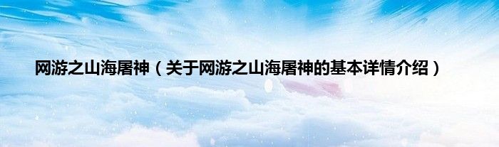本文关于网游之山海屠神的基本详情介绍就讲解完毕,希望对大家有所帮助。