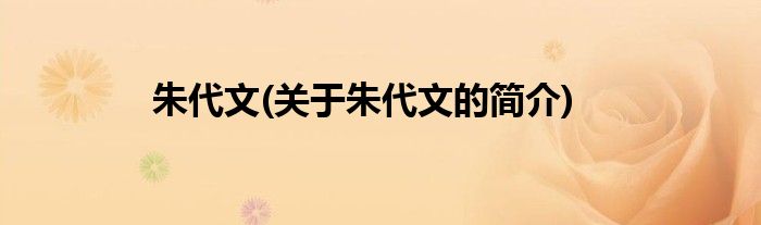 大家好,朱代文,关于朱代文的简介很多人还不知道,现在让我们一起来看看吧!