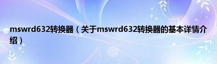 大家好我是小蝌蚪,mswrd632转换器,关于mswrd632转换器的基本详情介绍很多人还不知道,那么现在让我们一起来看看吧!