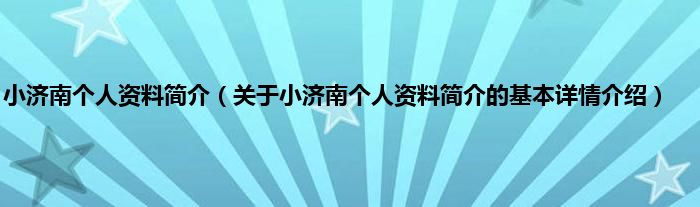 本文关于小济南个人资料简介的基本详情介绍就讲解完毕,希望对大家有所帮助。