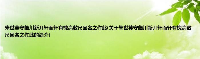 本文关于朱世英守临川新开轩而轩有槐高数尺因名之作此的简介就讲解完毕,希望对大家有所帮助。