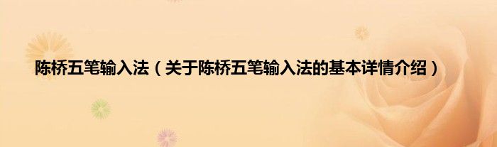 本文关于陈桥五笔输入法的基本详情介绍就讲解完毕,希望对大家有所帮助。
