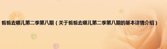 本文关于爸爸去哪儿第二季第八期的基本详情介绍就讲解完毕,希望对大家有所帮助。