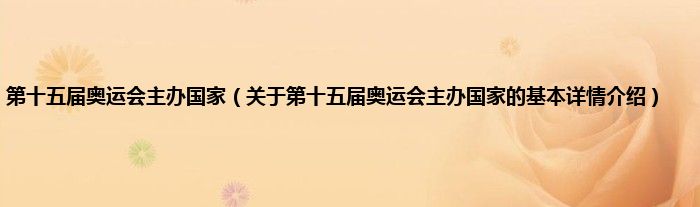 本文关于第十五届奥运会主办国家的基本详情介绍就讲解完毕,希望对大家有所帮助。