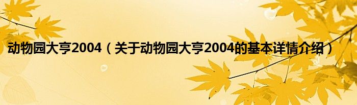 本文关于动物园大亨2004的基本详情介绍就讲解完毕,希望对大家有所帮助。