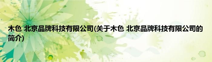 大家好,木色 北京品牌科技有限公司,关于木色 北京品牌科技有限公司的简介很多人还不知道,现在让我们一起来看看吧!