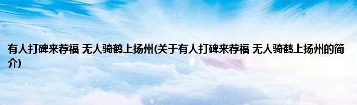 大家好,有人打碑来荐福,无人骑鹤上扬州,关于有人打碑来荐福,无人骑鹤上扬州的简介很多人还不知道,现在让我们一起来看看吧!