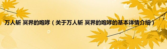 本文关于万人斩 冥界的咆哮的基本详情介绍就讲解完毕,希望对大家有所帮助。