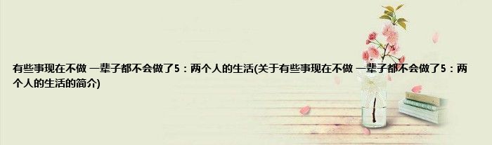 本文关于有些事现在不做,一辈子都不会做了5:两个人的生活的简介就讲解完毕,希望对大家有所帮助。