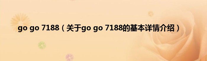 go go 7188(关于go go 7188的基本详情介绍)
