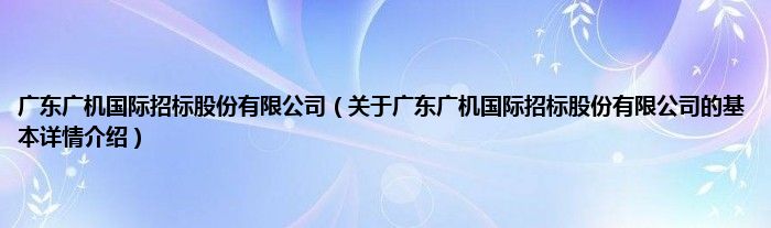 本文关于广东广机国际招标股份有限公司的基本详情介绍就讲解完毕,希望对大家有所帮助。