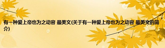 有一种爱上帝也为之动容 最美文(关于有一种爱上帝也为之动容 最美文的简介)