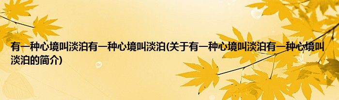 有一种心境叫淡泊有一种心境叫淡泊(关于有一种心境叫淡泊有一种心境叫淡泊的简介)