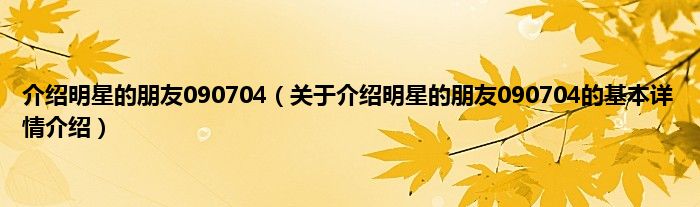 本文关于介绍明星的朋友090704的基本详情介绍就讲解完毕,希望对大家有所帮助。