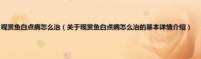 本文关于观赏鱼白点病怎么治的基本详情介绍就讲解完毕,希望对大家有所帮助。