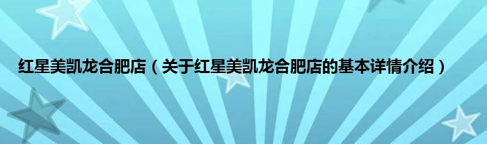 本文关于红星美凯龙合肥店的基本详情介绍就讲解完毕,希望对大家有所帮助。