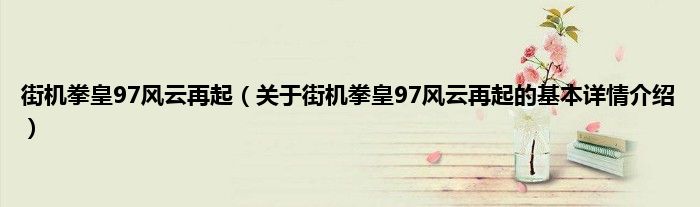 本文关于街机拳皇97风云再起的基本详情介绍就讲解完毕,希望对大家有所帮助。