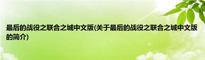 本文关于最后的战役之联合之城中文版的简介就讲解完毕,希望对大家有所帮助。