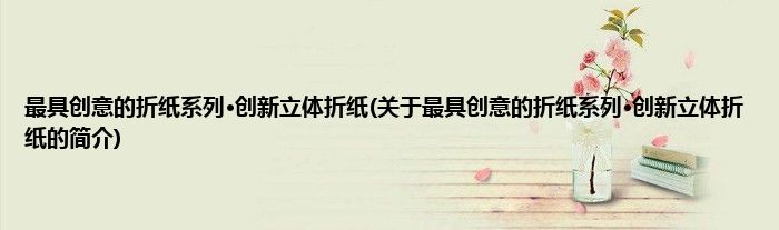 本文关于最具创意的折纸系列·创新立体折纸的简介就讲解完毕,希望对大家有所帮助。