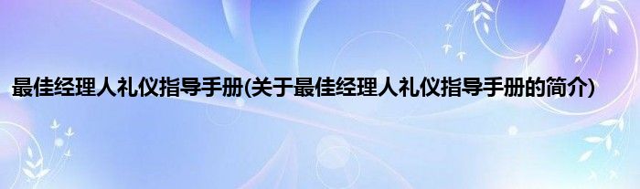 大家好,最佳经理人礼仪指导手册,关于最佳经理人礼仪指导手册的简介很多人还不知道,现在让我们一起来看看吧!