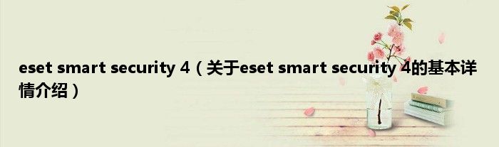 本文关于eset smart security 4的基本详情介绍就讲解完毕,希望对大家有所帮助。