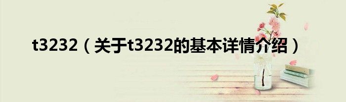 本文关于t3232的基本详情介绍就讲解完毕,希望对大家有所帮助。