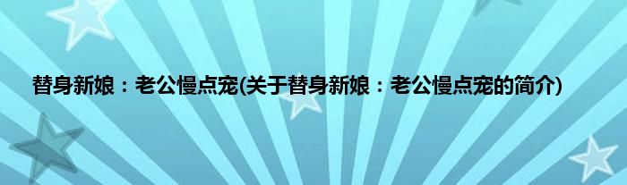 大家好,替身新娘:老公慢点宠,关于替身新娘:老公慢点宠的简介很多人还不知道,现在让我们一起来看看吧!