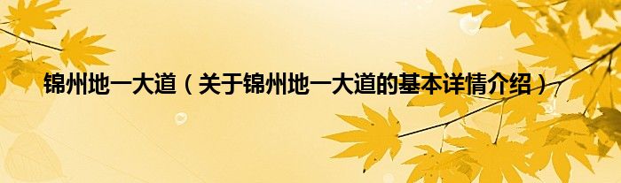 本文关于锦州地一大道的基本详情介绍就讲解完毕,希望对大家有所帮助。