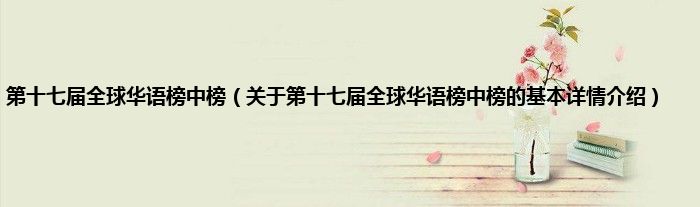 本文关于第十七届全球华语榜中榜的基本详情介绍就讲解完毕,希望对大家有所帮助。