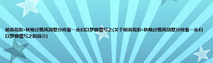 本文关于暗香疏影·秋晚过樵风别墅分残菊一丛归以梦窗谱写之的简介就讲解完毕,希望对大家有所帮助。