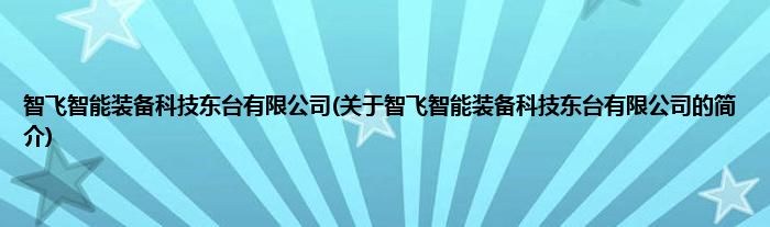 本文关于智飞智能装备科技东台有限公司的简介就讲解完毕,希望对大家有所帮助。
