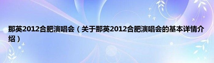 1、2012那英合肥演唱会于2012年在合肥体育中心体育馆演出。