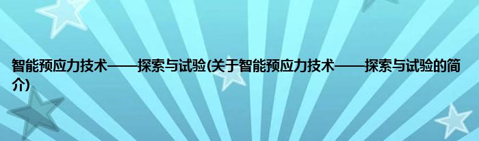 本文关于智能预应力技术——探索与试验的简介就讲解完毕,希望对大家有所帮助。