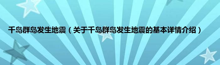本文关于千岛群岛发生地震的基本详情介绍就讲解完毕,希望对大家有所帮助。