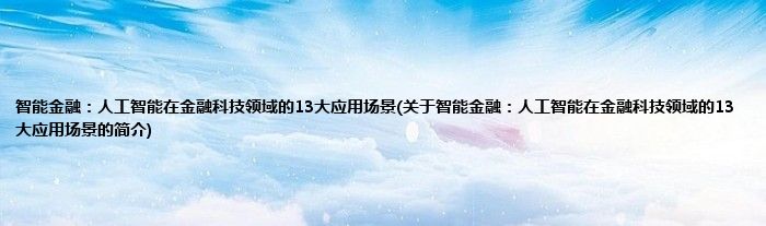 本文关于智能金融:人工智能在金融科技领域的13大应用场景的简介就讲解完毕,希望对大家有所帮助。