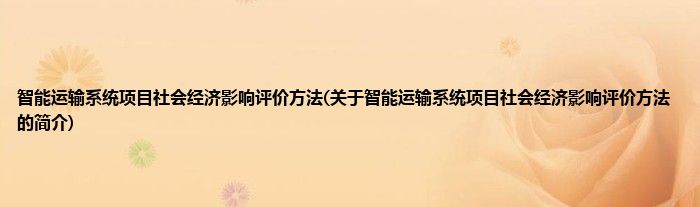 大家好,智能运输系统项目社会经济影响评价方法,关于智能运输系统项目社会经济影响评价方法的简介很多人还不知道,现在让我们一起来看看吧!