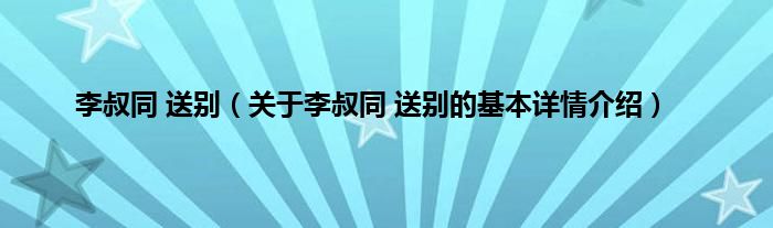本文关于李叔同 送别的基本详情介绍就讲解完毕,希望对大家有所帮助。