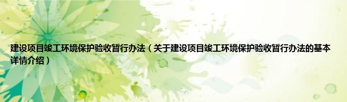 本文关于建设项目竣工环境保护验收暂行办法的基本详情介绍就讲解完毕,希望对大家有所帮助。