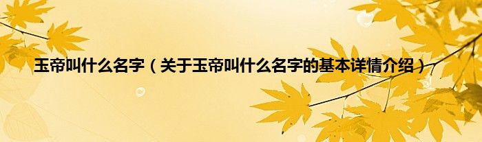 本文关于玉帝叫什么名字的基本详情介绍就讲解完毕,希望对大家有所帮助。