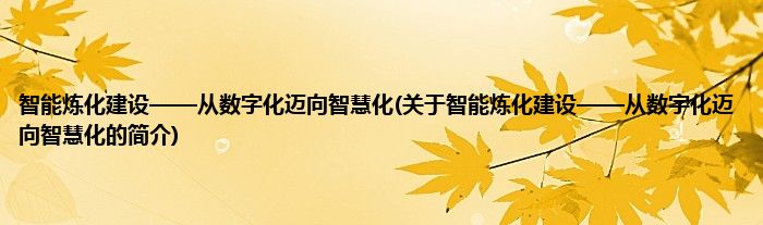 本文关于智能炼化建设——从数字化迈向智慧化的简介就讲解完毕,希望对大家有所帮助。