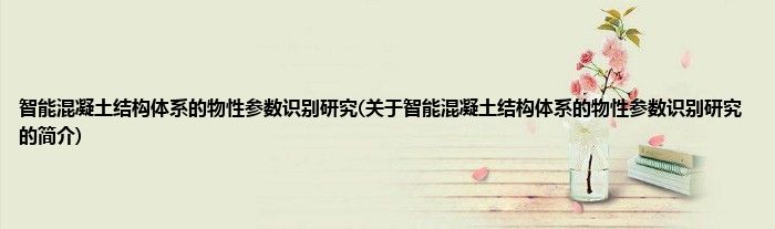 本文关于智能混凝土结构体系的物性参数识别研究的简介就讲解完毕,希望对大家有所帮助。
