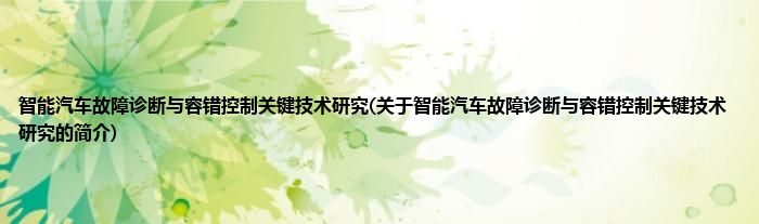 本文关于智能汽车故障诊断与容错控制关键技术研究的简介就讲解完毕,希望对大家有所帮助。