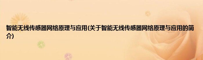本文关于智能无线传感器网络原理与应用的简介就讲解完毕,希望对大家有所帮助。