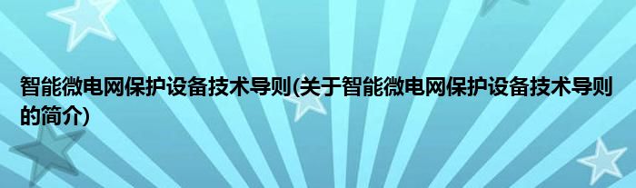 本文关于智能微电网保护设备技术导则的简介就讲解完毕,希望对大家有所帮助。