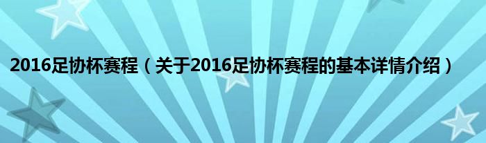 本文关于2016足协杯赛程的基本详情介绍就讲解完毕,希望对大家有所帮助。