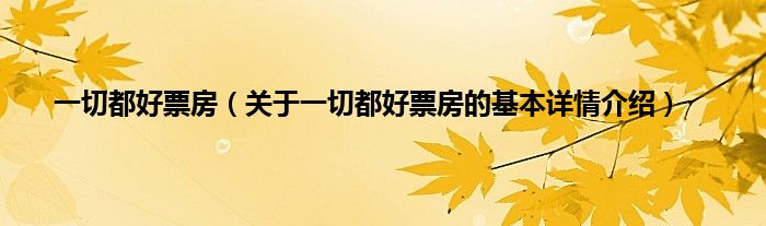 本文关于一切都好票房的基本详情介绍就讲解完毕,希望对大家有所帮助。